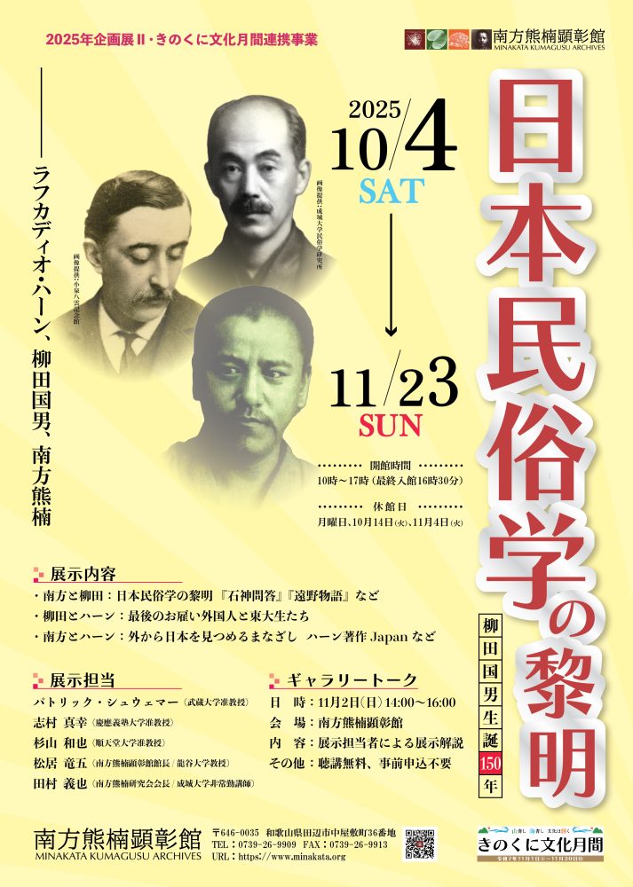 きのくに文化月間連携事業 2025年企画展Ⅱ「日本民俗学の黎明:ラフカディオ・ハーン、柳田国男、南方熊楠ー柳田国男生誕150年ー」